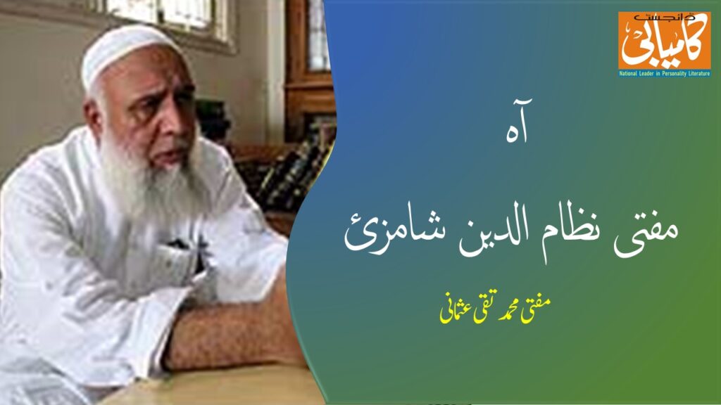 میں صبح کے وقت صحیح بخاری کے درس میں مصروف تھا کہ استقبالیہ سے ایک پرچہ موصول ہوا کہ مولانا مفتی نظام الدین شامزئی صاحب پر قاتلانہ حملہ ہوا ہے اور انہیں ہسپتال لے جایا گیا ہے، پرچہ دیکھتے ہی دل پر بجلی سی گری، ہسپتال لے جانے کی اطلاع سے کچھ اُمید بندھی تھی کہ شاید یہ حملہ پوری طرح کارگر نہ ہوا ہو، لیکن تھوڑی ہی دیر بعد یہ آس ٹوٹ گئی، معلوم ہوا کہ وہ شہادت سے سرخ رو ہو کر اپنے مالک کی بارگاہ میں پہنچ چکے ہیں۔